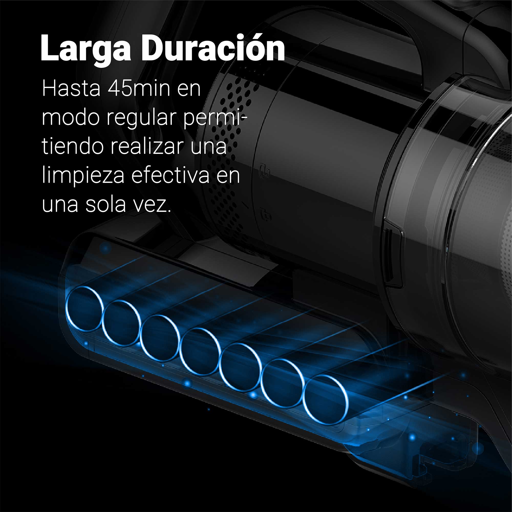 Soy la aspiradora Stick de Eureka ideal y versátil gracias a mi función 3 en 1, me convierto fácilmente en aspiradora de mano, cuento con un contenedor removible con un solo toque y la capacidad de contener hasta 0.65L. Además, mis filtros de escape y esponjas de alta eficiencia son te garantizan una gran limpieza.