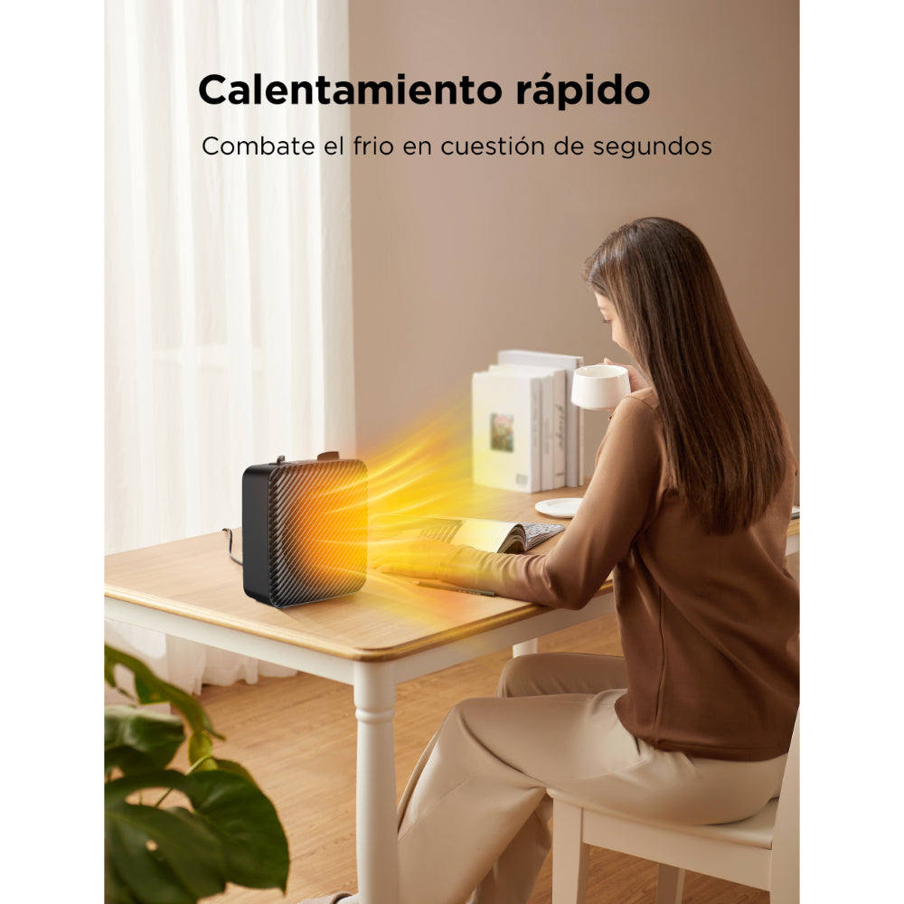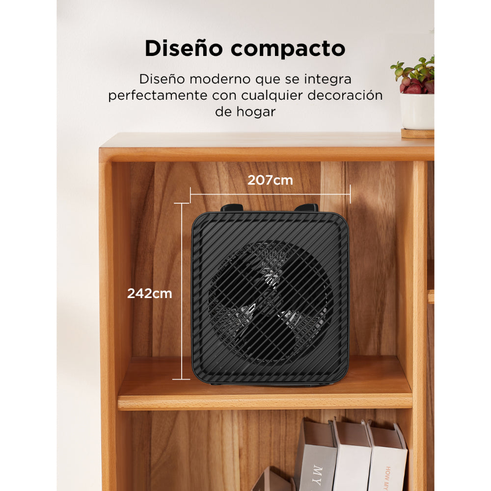 Soy el calentador 2 en 1 de 9” con tecnología Multi-Air que te permite calentar y ventilar tu espacio, mis 3 velocidades se ajustan desde 600W hasta 1500W, puedes llevarme contigo a cualquier lugar gracias a mi diseño compacto y ligero. Cuido tu seguridad con mi protección anticaídas que al momento de un accidente me apagó automáticamente y protección contra sobrecalentamiento. Mi luz indicadora podrá mostrarte cuando esté encendido o apagado.