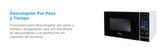 Te apoyaré en todo momento para que tengas una experiencia gourmet moderna, gracias a mi función favorito, 10 niveles de potencia y 6 programas predeterminados. También soy super funcional, con mi opción +30 segundos, opciones de descongelamiento y temporizador. Además no te preocupes por mi funcionamiento, pues tengo 2 años de garantía en partes y componentes.