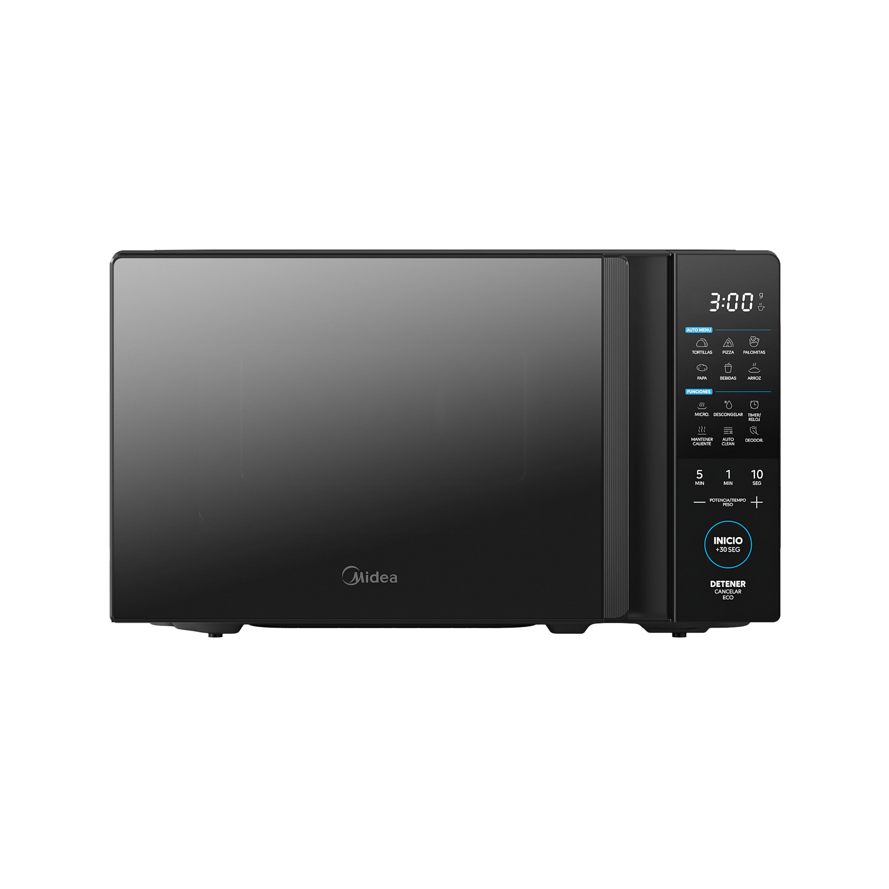 Este horno de microondas negro de 20 litros combina estilo y funcionalidad. Su puerta tipo espejo y panel digital LED y tecnología AutoClean facilitan el uso y mantenimiento. Incluye función para mantener caliente, deodorizador que elimina malos olores, 6 menús automáticos y descongelado por peso o tiempo.