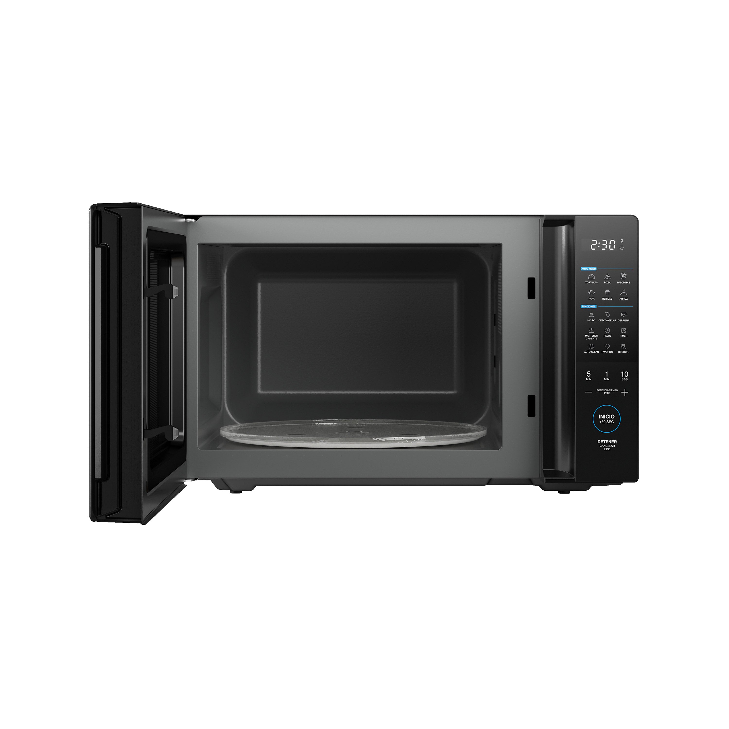 Este microondas 1.4 pies cúbicos ofrece 6 funciones automáticas, 11 niveles de potencia y modo ECO para mayor eficiencia energética. Su diseño incluye una puerta espejo, panel digital LED y cavidad espaciosa. Además, incorpora tecnología AutoClean, función para mantener caliente y deodorizador que elimina malos olores. Ideal para quienes buscan comodidad, estilo y practicidad en su cocina.