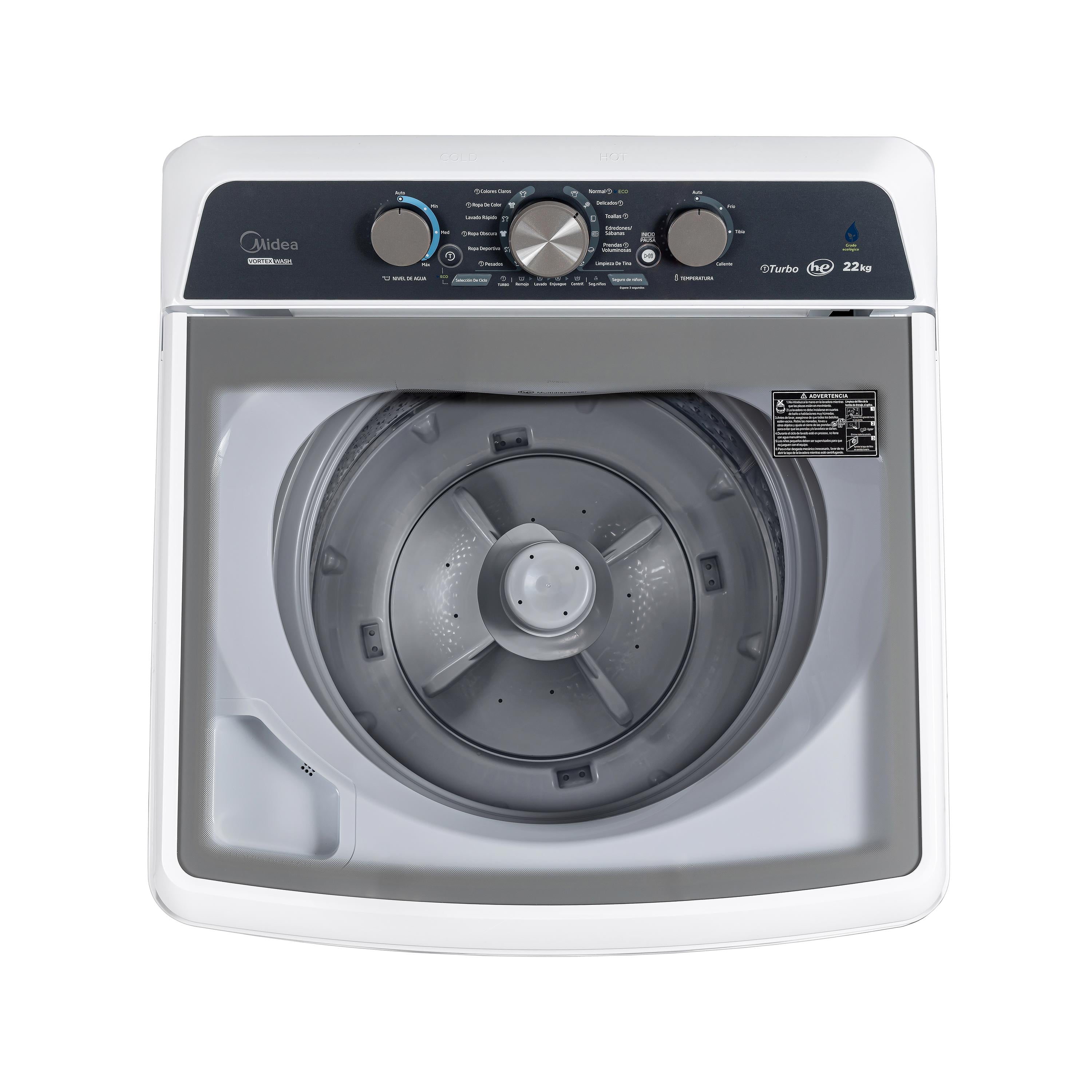 Lavadora Carga Superior Midea 22Kg Vortex Wash Agitador Blanca