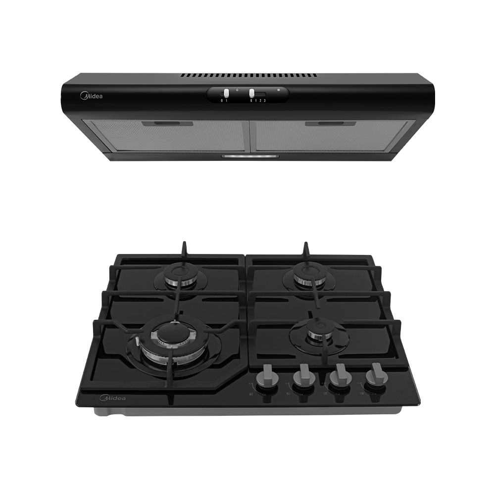 Parrilla Empotrable a Gas 24" Cristal Templado Triple Flama + Campana de Pared 24" Slim Negro Mate