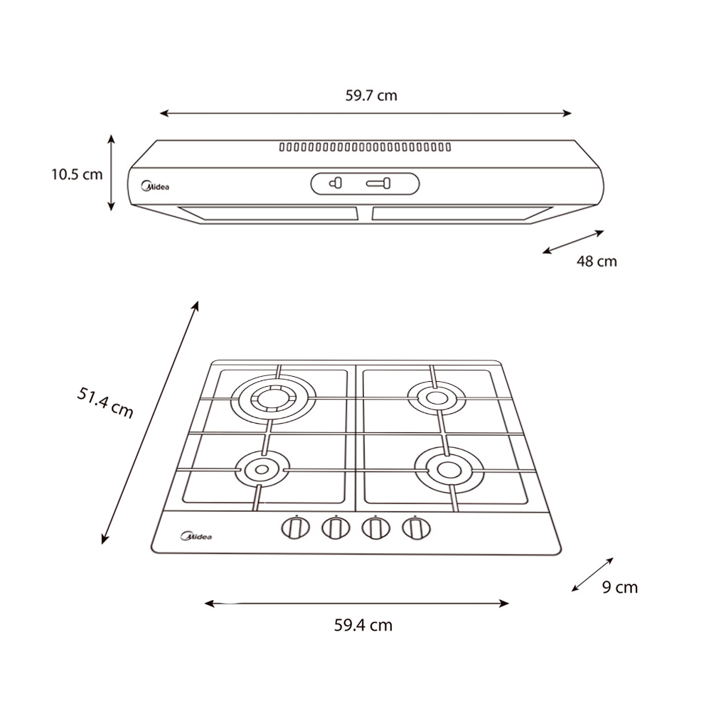 • Parilla Dimensiones:60x 51x 10cm (Ancho x Profundo x Alto)