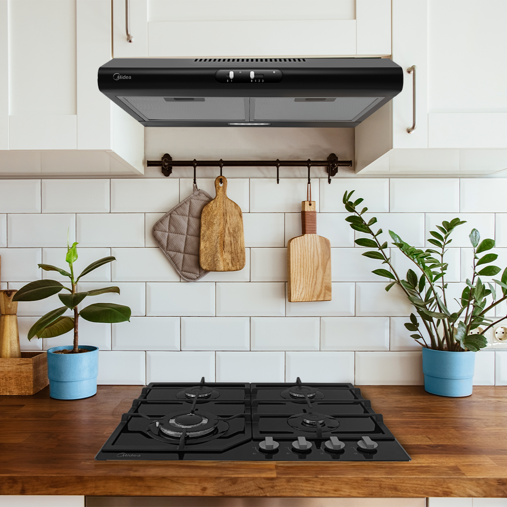 Eleva tu cocina con la Parrilla Empotrable a Gas de 24” en cristal templado, que proporciona una cocción precisa gracias a sus tres potentes flamas. Complementando este elegante diseño, la Campana de Pared Slim de 24” en negro mate asegura una ventilación eficiente y añade un toque moderno a tu espacio.