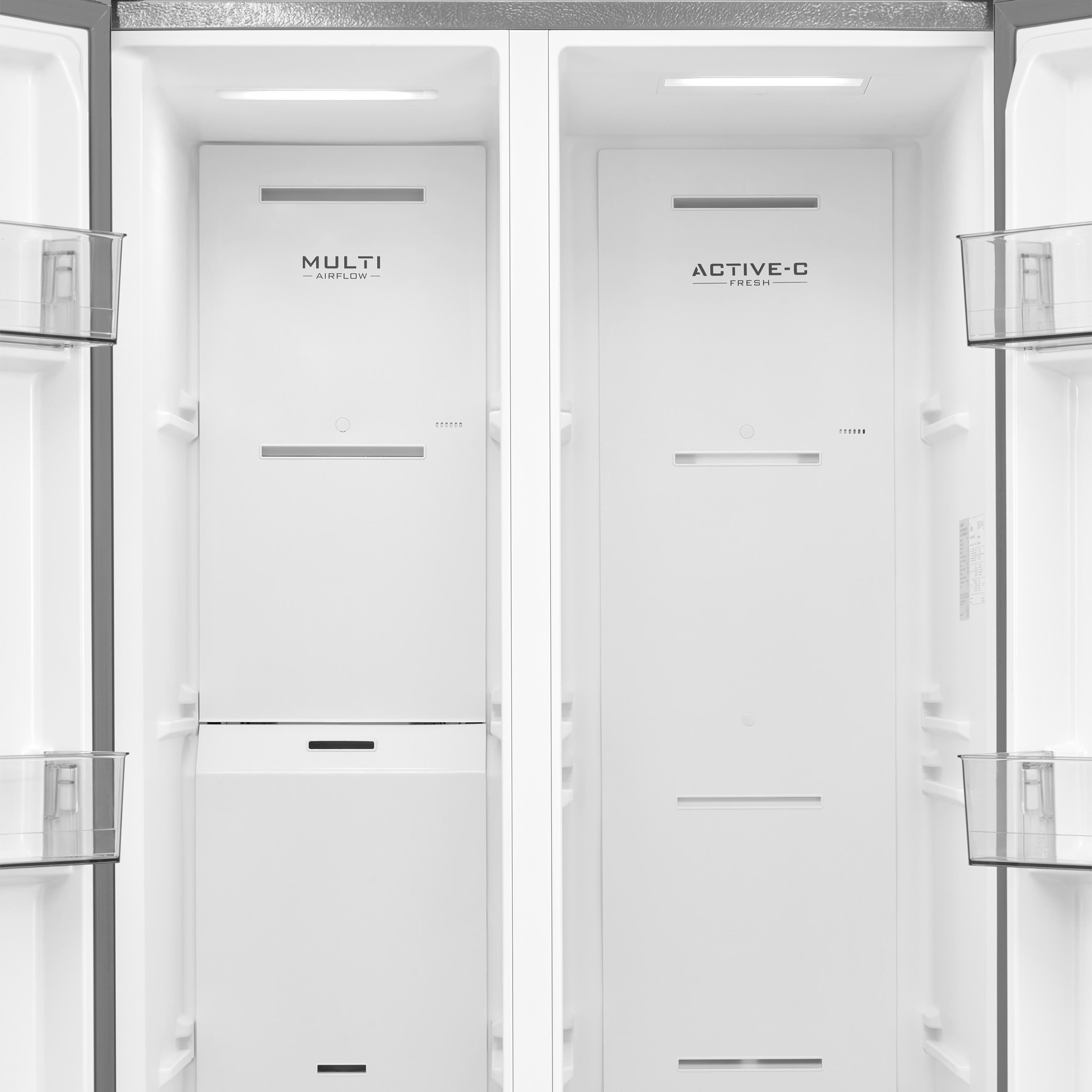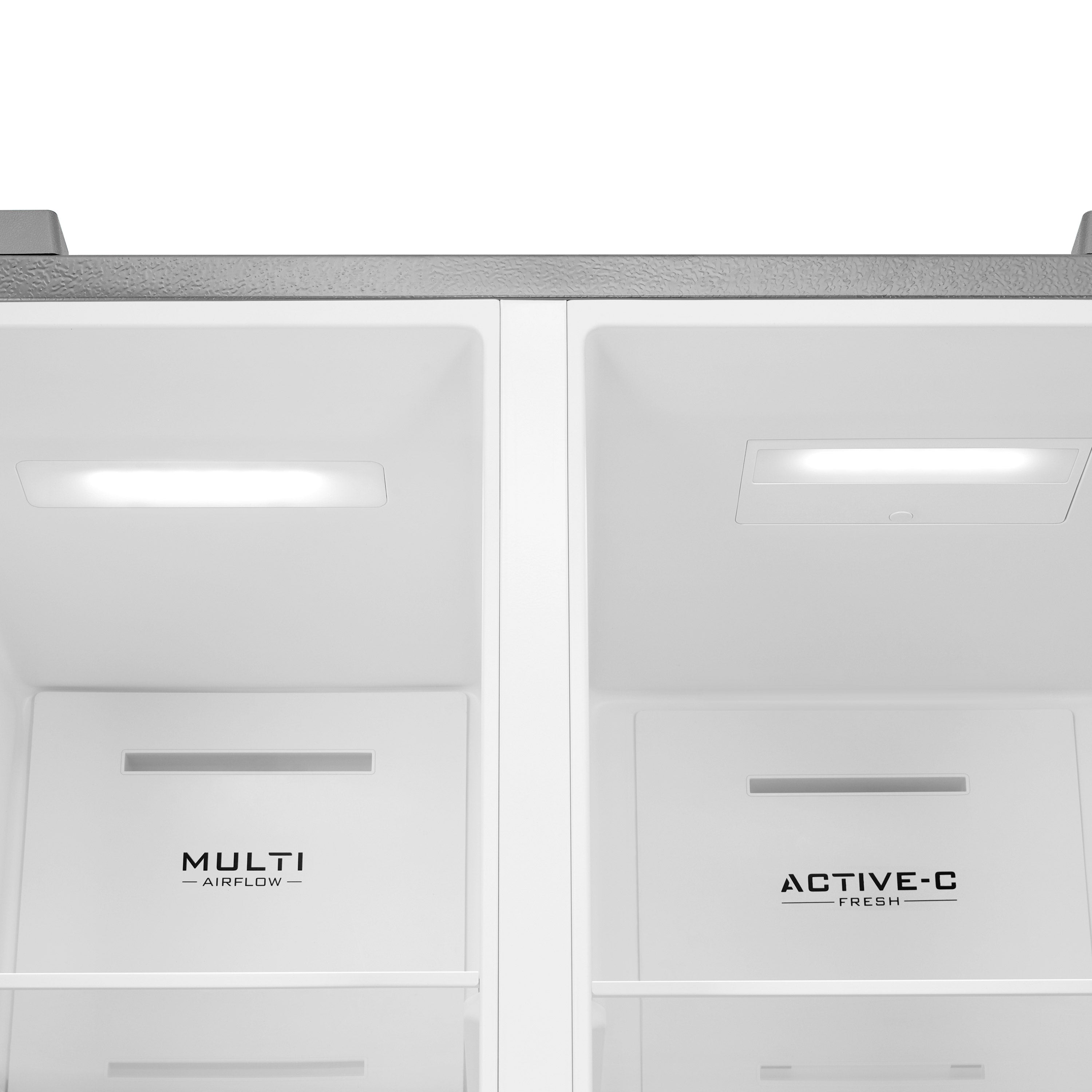 Refrigerador Automático Midea Side By Side Inverter Quattro Bru Steel 17 Pies Cúbicos con Wifi