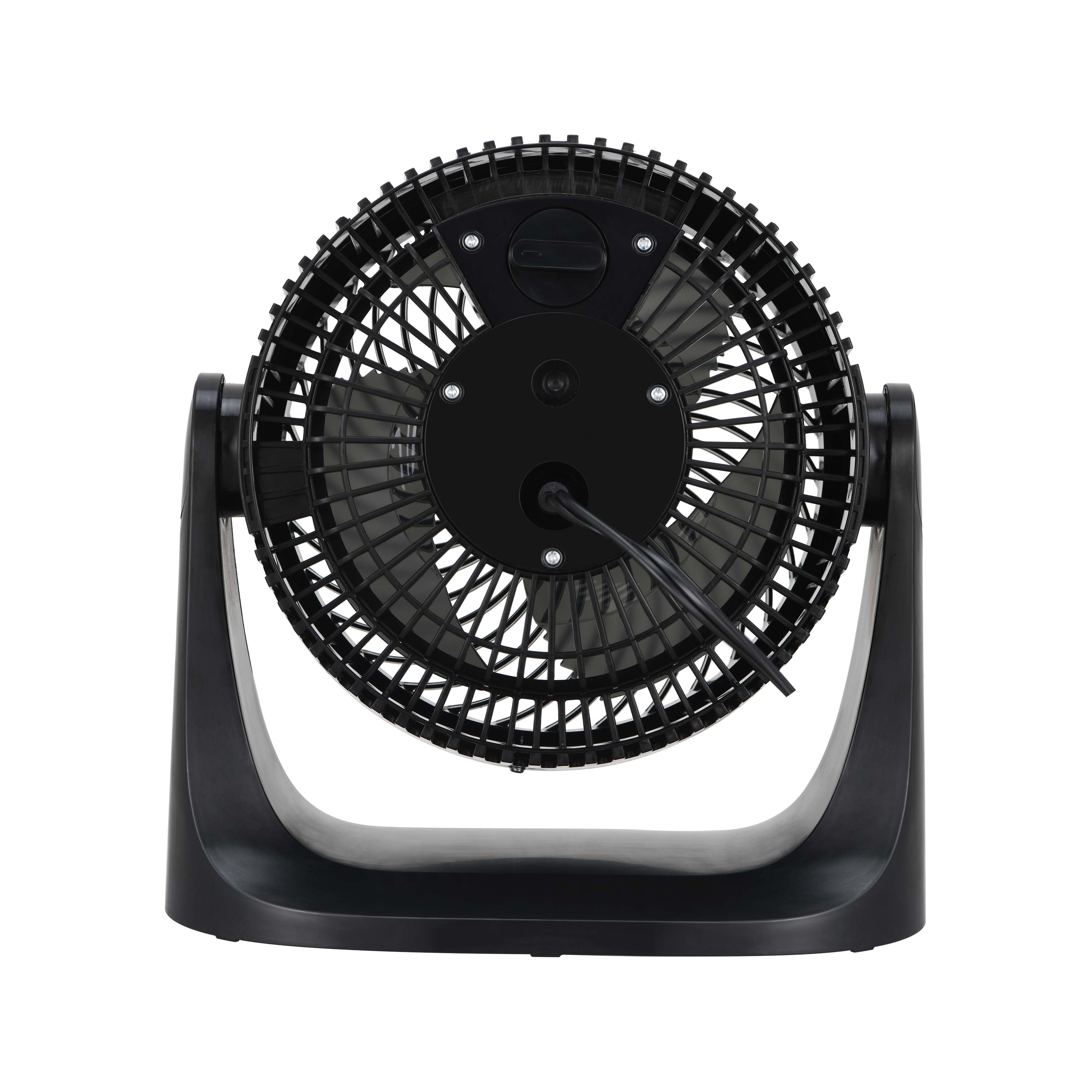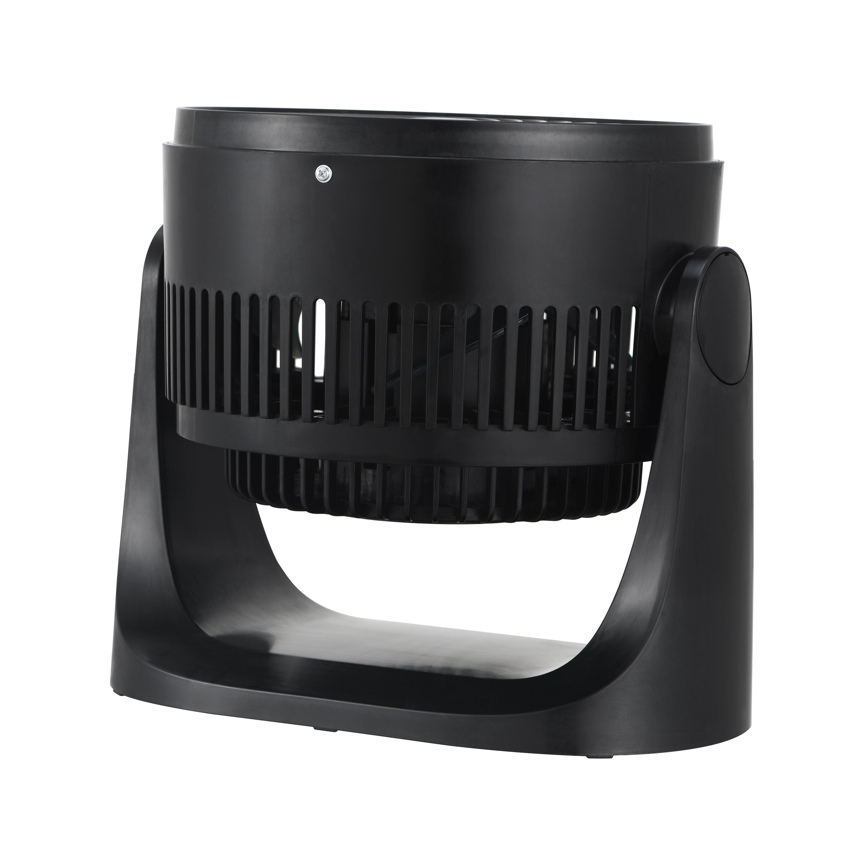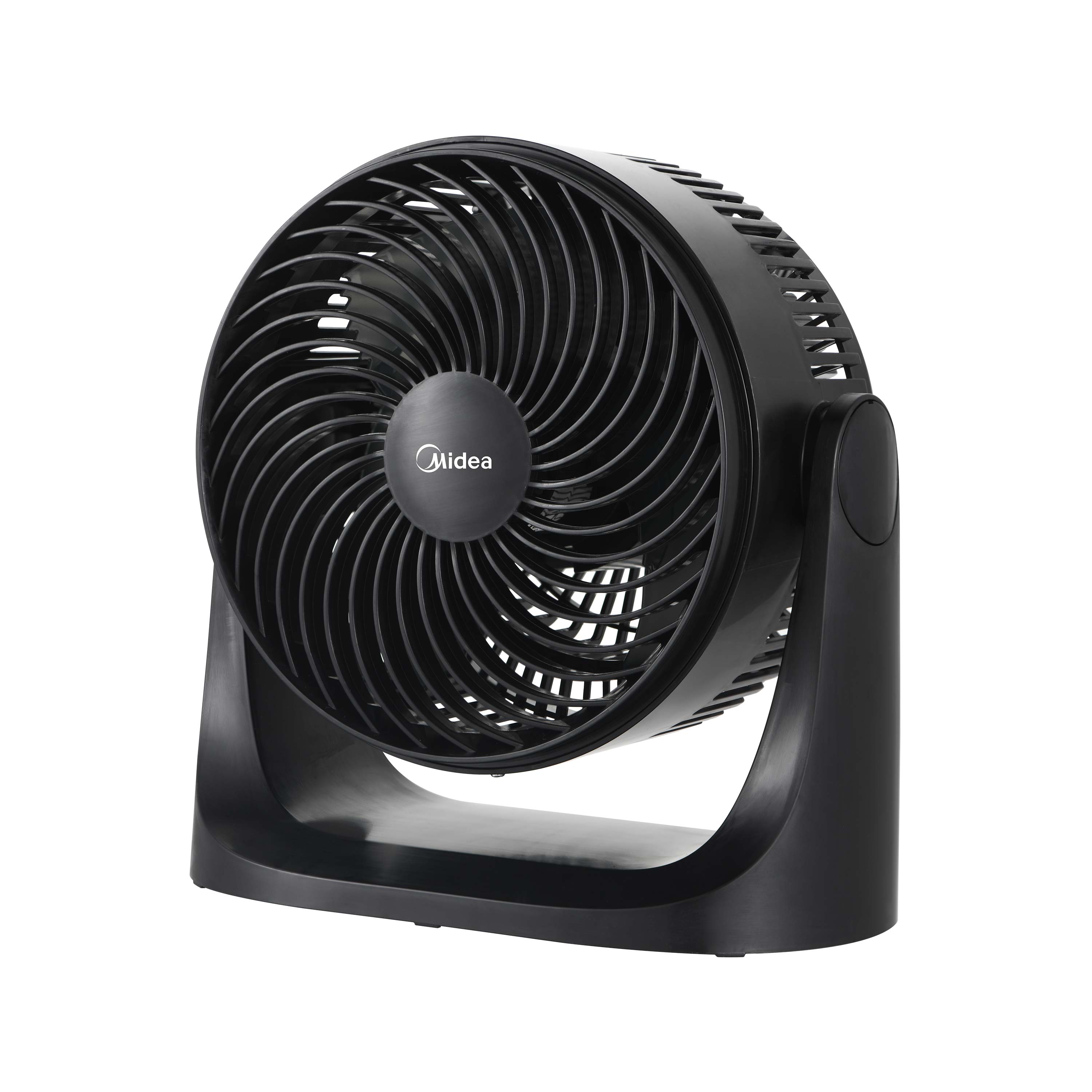 Ventilador mini Turbo de 7 pulgadas, perfecto para uso personal o espacios pequeños. Cuenta con 3 velocidades ajustables y una cabeza inclinable de 100° para dirigir el flujo de aire. Su diseño compacto permite colocarlo en mesa, piso o pared.